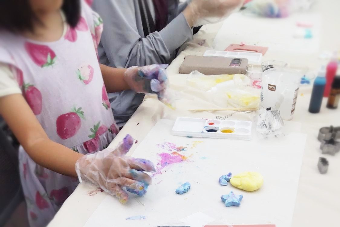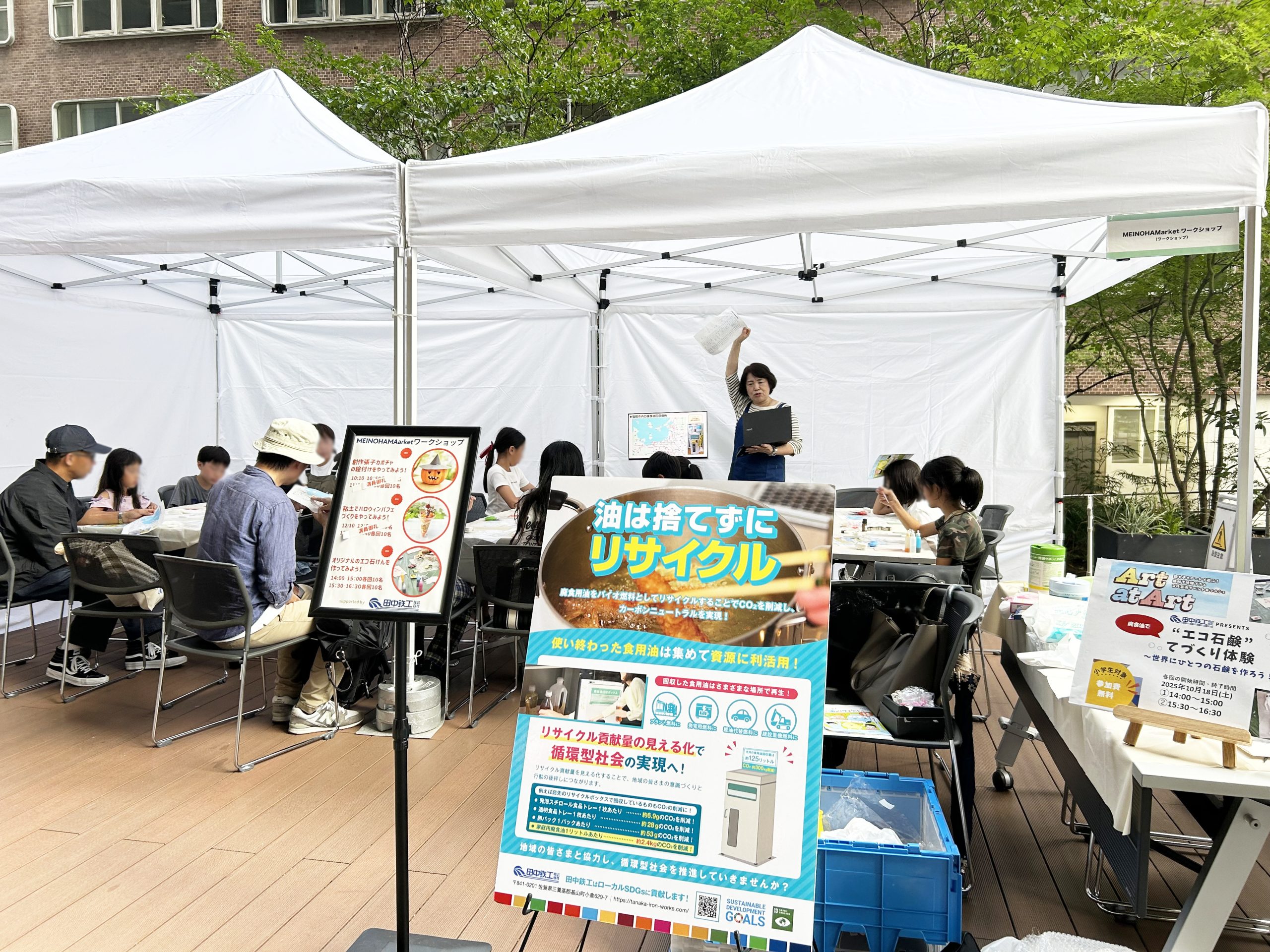 2025年10月18日(土)、福岡市天神のふくぎん本店広場で開催された「親も子もアートで遊ぶ!無料で体験できる文化芸術イベント&マルシェ『Art at Art』」のMeinohama Marketブースにて、「オリジナルエコ石鹸づくり体験」を開催しました。